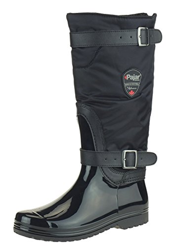 Binding : Apparel Product Description Step through the harshest weather conditions like you're walking on sunshine, thanks to these women's Rory waterproof boots by Pajar. The insulated nylon shaft secures with a convenient back zipper, equipped with a full gusset to ensure your legs stay dry. Two decorative straps with buckles add modern style. High-shine rubber uppers are waterproof, partnering perfectly with the treaded rubber outsoles to comfortably get you where you need to go even in the rain and snow. 13 inch shaft, 16 inch top shaft circumference with 2.5 inch gusseted rear zipper. PLEASE NOTE: these boots will fit narrow to medium feet with low to medium instep. For medium to wide feet and high instep please order one size up. 0
