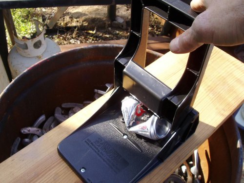 As can be seen from the photo you can mount it horizontally or flat. You can even leave it loose on the kitchen counter. Or you can mount it vertically on the wall. What ever is most convenient for YOU. Remember to mount it so others can crush their cans as it keeps a place looking clean without you doing all the work. Plus Recycling pays you back!