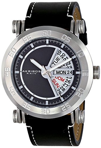 -. Title : Akribos XXIV Men's AK552BKS Quartz Movement Watch with Black Dial and Black with White Stitching Leather Strap