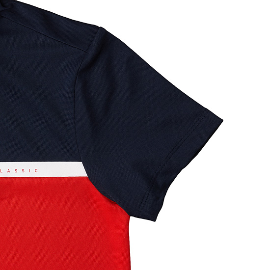 - 몸판 투톤 배색으로 스포티한 포인트를 준 여성 피케 티셔츠.