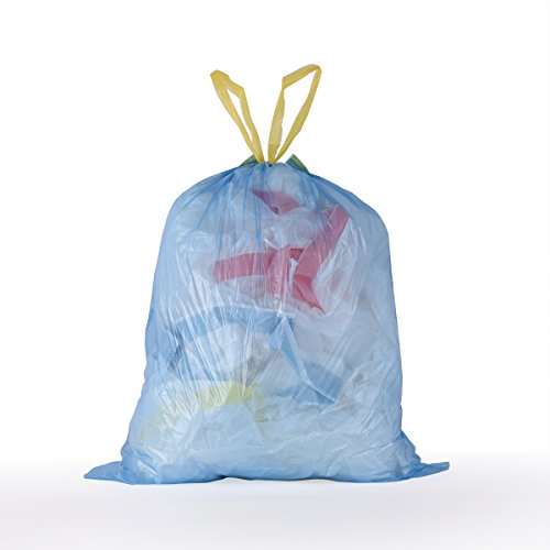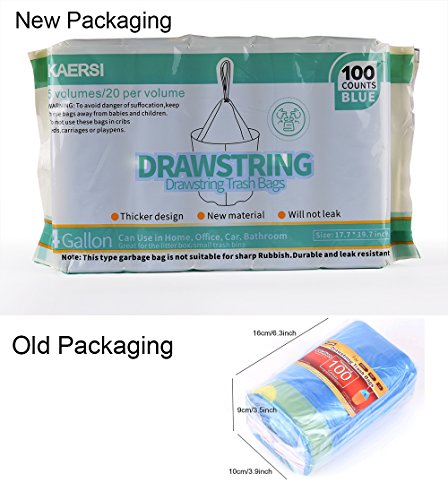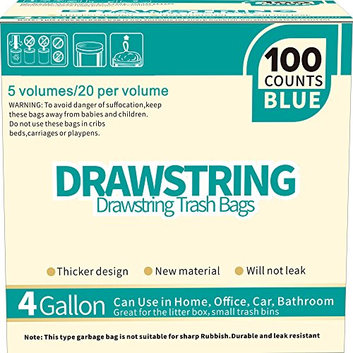 KAERSI Small Drawstring Trash Bags for Bathroom, Kitchen, Office Waste Bin / Wastebasket, 4 Gallon, 100 Counts Blue
