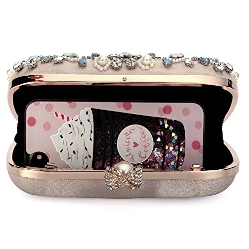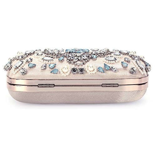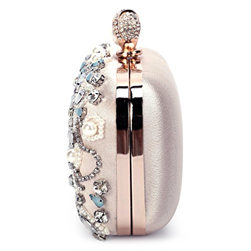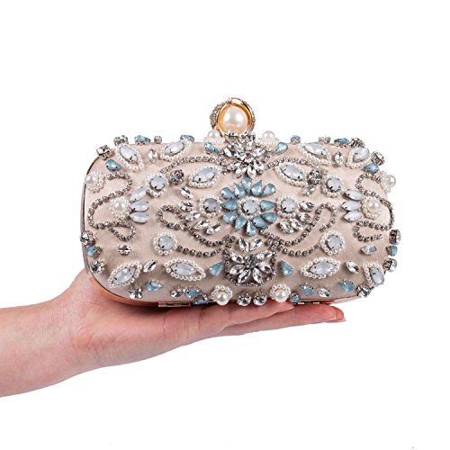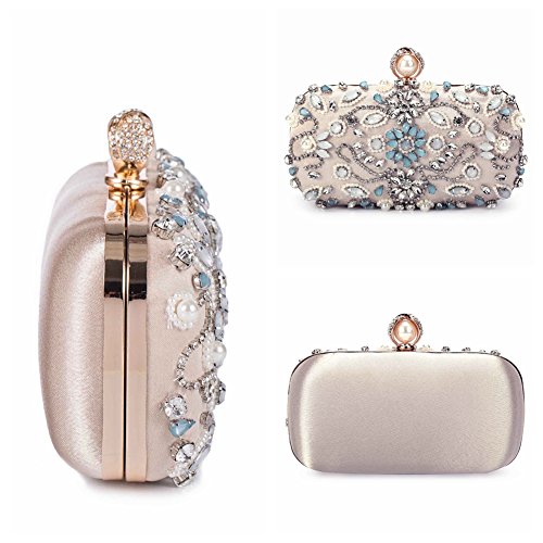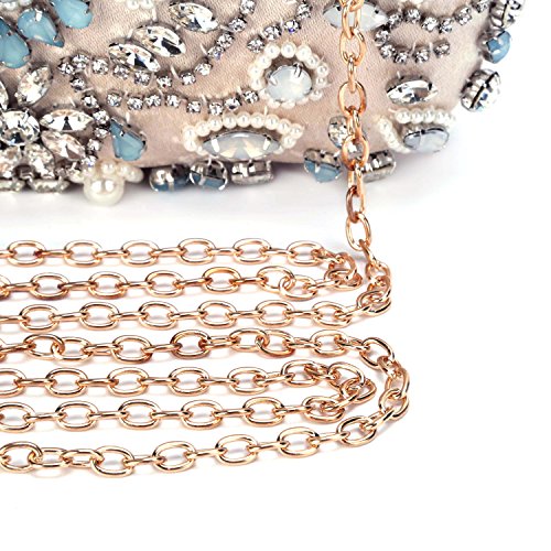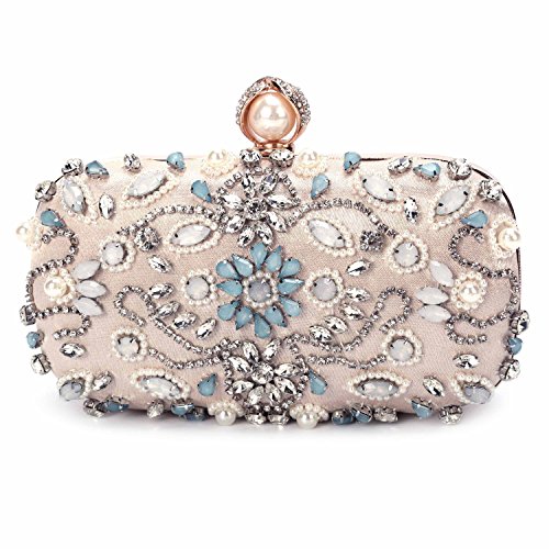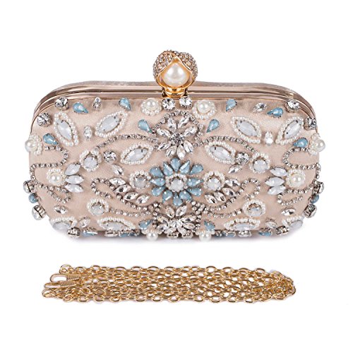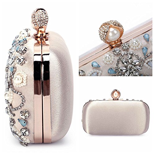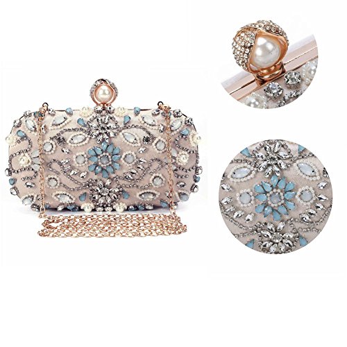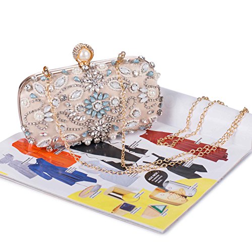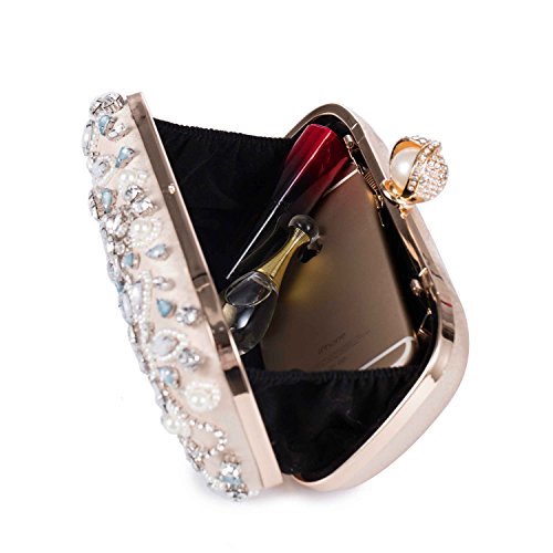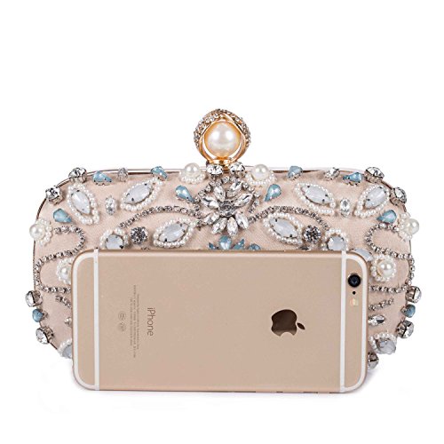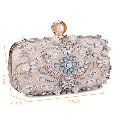 Features Size: 9.06"(L)*1.19"(W)*5.52"(H) Material: Handmade rhinestone,polyester with meticulous pearl embroidery with ring clasp which can be opened and closed smoothly. Occasions: Wedding/prom/party/black tie/show/cocktail/night out. Fit enough: Cell phone/small wallet/mirror/lipstick/makeups/cash/credit card/car keys. Package Included: 1 x Pearl Evening Clutches Bags 1 x 13.78" Removable Chain 1 x 47.24" Long Removable Chain Notes:
