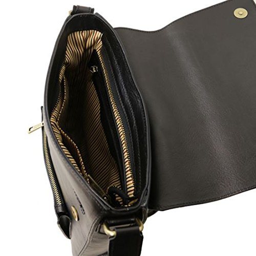 -. Brand : Tuscany Leather -. Color : Black -. Department : mens -. Feature : Materials: Polished calf-skin leather / Product Dimensions: 2.8 x 11 x 11.6 inches / Back compartment with YKK metal zip / Two multi-function pockets / Made in Italy -. Model : TL141656 -. ProductGroup : Apparel -. ProductTypeName : LAGE -. Size : m -. Title : Tuscany Leather Oliver Leather crossbody bag for men with front pocket - TL141656