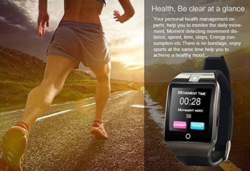 -. Feature : 1.4" display screen is easy for reading, Sleek watch design, comfortable and convenient to use / Act as pedometer, incoming calls / SMS reminder and so on / Support sync music, clock, address book, call history, messages, on-line Instagram, multiple languages etc. / Once there is message coming from Wechat, QQ or Twitter, it will instantly remind you / Power Saving Mode: Open the Power Saving Mode, Power Consumption Will Reduced To the Minimum, Watch Will Use Longer