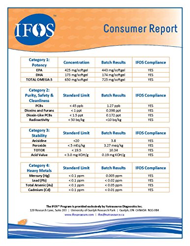 OMAPURE offers one of the purest Omega-3 supplements on the market with a 70% concentration of EPA and DHA, the two main active ingredients in Omega-3. This ultra pure concentration means consumers need to take less OMAPURE softgels than lower quality brands. Higher purity also results in a better taste and fewer side effects.OMAPURE's molecularly distilled fish oil is the only one verified by USP (United States Pharmacopeia), the official public standards-setting authority for all prescription and OTC drugs in the US.Since most Omega-3 is sourced from fish oil, it is critical to ensure the absence of mercury and other dangerous contaminants. Each and every OMAPURE batch is tested by the world's most stringent third party Omega-3 testing lab, IFOS (International Fish Oil Standards) and each batch has received the highest 5 star rating from IFOS.OMAPURE is the most economical choice at the premium end of the market.Feature