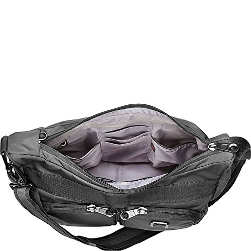 RFID-blocking, anti-theft messenger bag has durable nylon exterior with water-resistant PU coating. Lightweight, flexible and slash-resistant, Magnaloft fabric panels in crucial compartments. Locking hardware prevents grab and go thieves. Exterior locking pocket for phone and other small items. Internal pockets for passport and room key.Feature