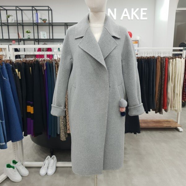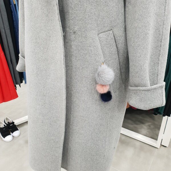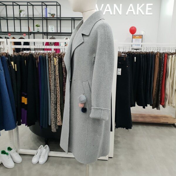 적당한두께감으로 늦가을 초겨울까지 걸치기좋은루즈핏 울혼방코트 폼폼장식으로 귀여움을 더해준 디자인