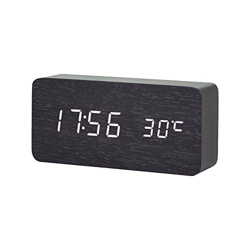 -. Title : Felimoa 置き時計 LED 目覚まし時計 アラーム 温度 湿度 音声感知 USB給電 電池 木目調 おしゃれ