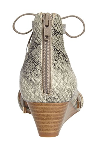 Studio : Comfortview Publisher : Comfortview Binding : Apparel Product Description These snake-embossed faux-leather sandals offer a fun and festive way to show off your style in the sun! snake-embossed leather-like upper adjustable front lace-up full back zip closure memory foam insole flexible skid-resistant sole 1¾" heel Snake-embossed leather-like sandals available in full and half sizes 0