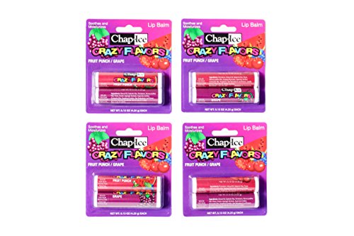 Chap Ice CRAZY FLAVORS Lip Balm - 4 pack (8 tube) Varieties (Fruit Punch/Grape)
