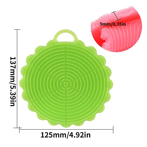 -. Feature : Multiple function: It is a very good choice for light washing, you can use this silicone brush for washing dishes,plates, fruit, vegetable and so on, also it can use as a heat insulation mat, and even you can use it for shower.