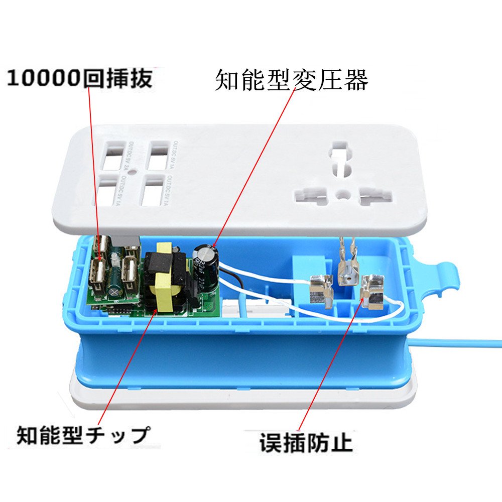 Full speed charging technology: Combination of PowerIQ and VoltageBoost enables full speed charging (1 port at most 2.4 A. Home, traveling outlet tap (1 mouth) + USB charging port (4 mouth), 150 cm long