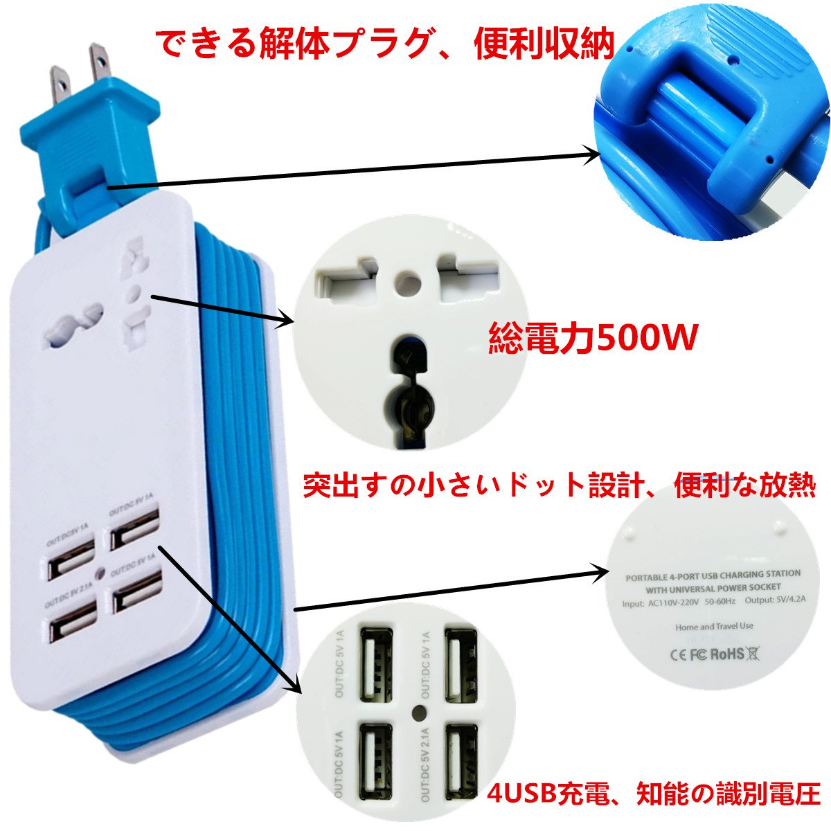 Total power 500 W USB quick charger 4 port output 5 V / 4.2 A Extension line 1.5 m