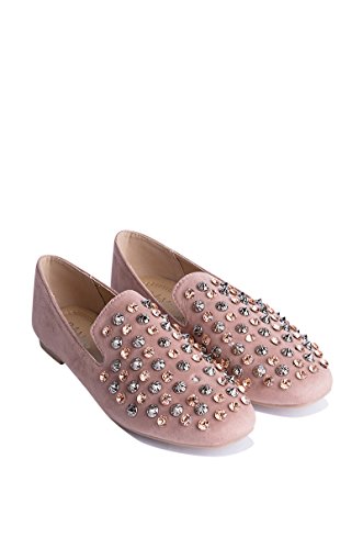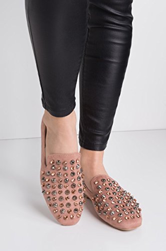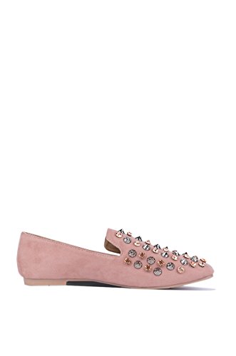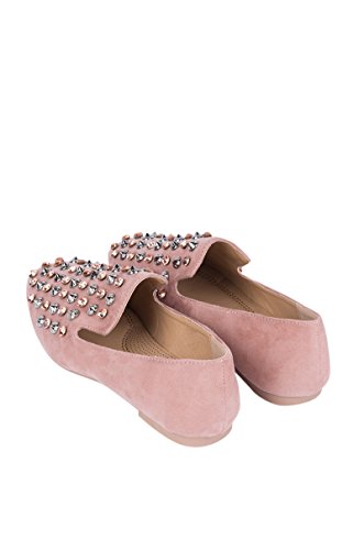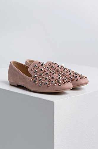 Product Description A beautiful friendship between fancy faux suede and shiny studs. The Good Vibrations Studded Flats have a low heel, squared toe, loafer-style cut, and a faux suede upper decorated on the toebox with shiny diamond-shaped studs. Digging those good vibes. 0
