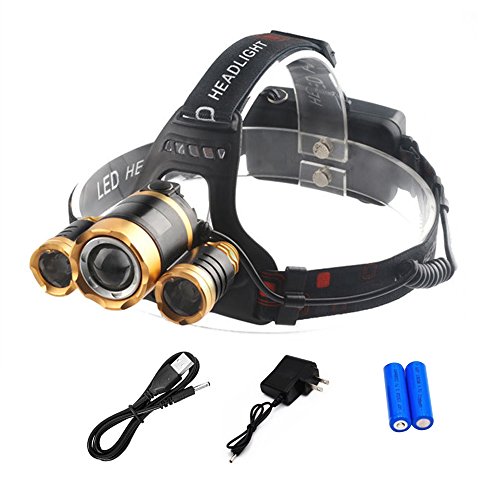 【초높음 휘도】충전식LED헤드라이트 3*CREE XM-L T6LED팁(칩),광범위의 방사선,고렌즈+8000루멘,400미터의 조사 거리.