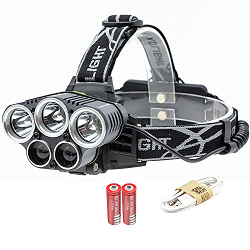【초높음 휘도】충전식LED헤드라이트 3*CREE XM-L T6팁(칩)+2*COB팁(칩),광범위의 방사선,고렌즈+8000루멘,400미터의 조사 거리.