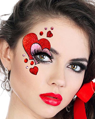 [Product Information]- Valentines Glamour. Celebrate and spread the love with this Xotic Eyes Valentines Heart Mask. This easy to use womens makeup set if perfect for valentines day or to add a little romance to your fancy dress costume or corset. The kit consists of a pink and red glitter double heart stick on eye makeup two smaller red glitter hearts three large red rhinestones and five smaller pink rhinestones. Full instructions are included on the package. Item Includes: 1x Double Heart Stick On. 2 x Small Red