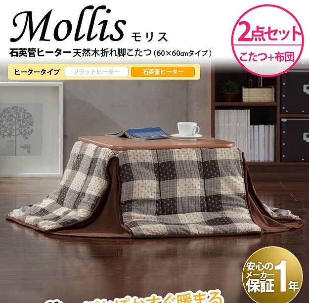 こたつテーブル 省スペースこたつ布団セット 正方形 60cm 木製 リバーシブル モリス