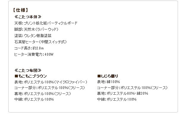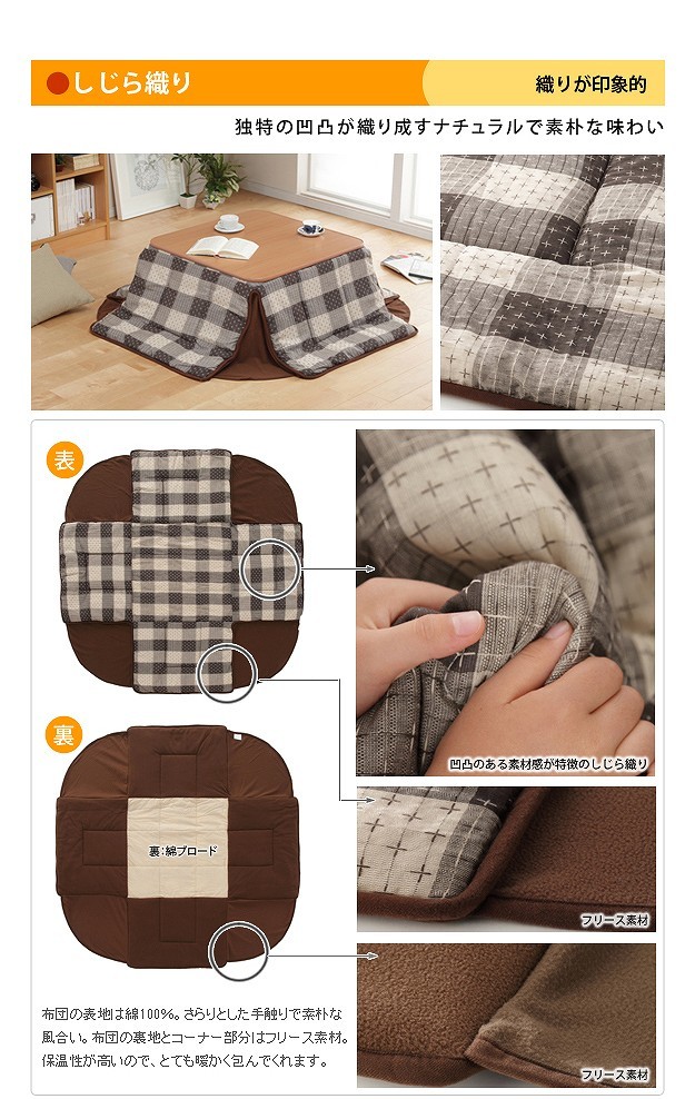 カラー:こたつ-ナチュラル・ブラウン 布団-しじら織り・もこもこブラウン