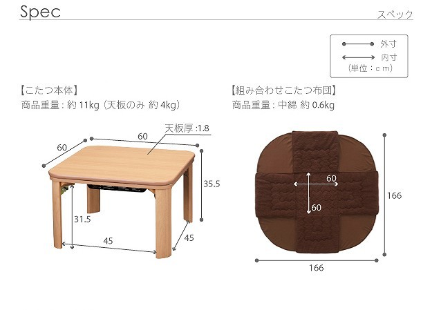 サイズ(cm):本体-幅60x奥行60x高35.5・約11kg
