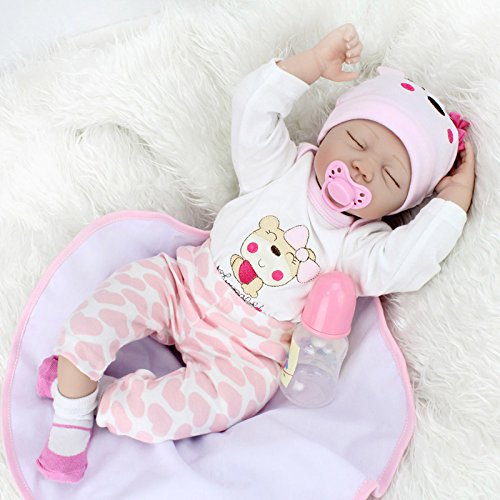 ► Soft Silicone head,and 3/4 Ratio Arms,Legs and have a Soft Cloth body!Give your hear a Cute,Hug a Comfort Kids Doll