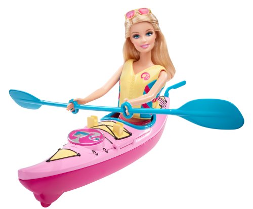 On-the-Go accessory packs include a Barbie doll and fabulous accessories for fun anywhere, anytime! With this stylish sports gear, Barbie doll is ready for a day of adventure! Fly across the waves on the bright pink and blue windsurfing board or ride the rapids in the colorful kayak. Each set includes a doll dressed for a day at the beach and has all the right accessories for fun "on the go"! Includes doll, sports gear and accessories. Each sold separately. Ages 3 and older.Feature