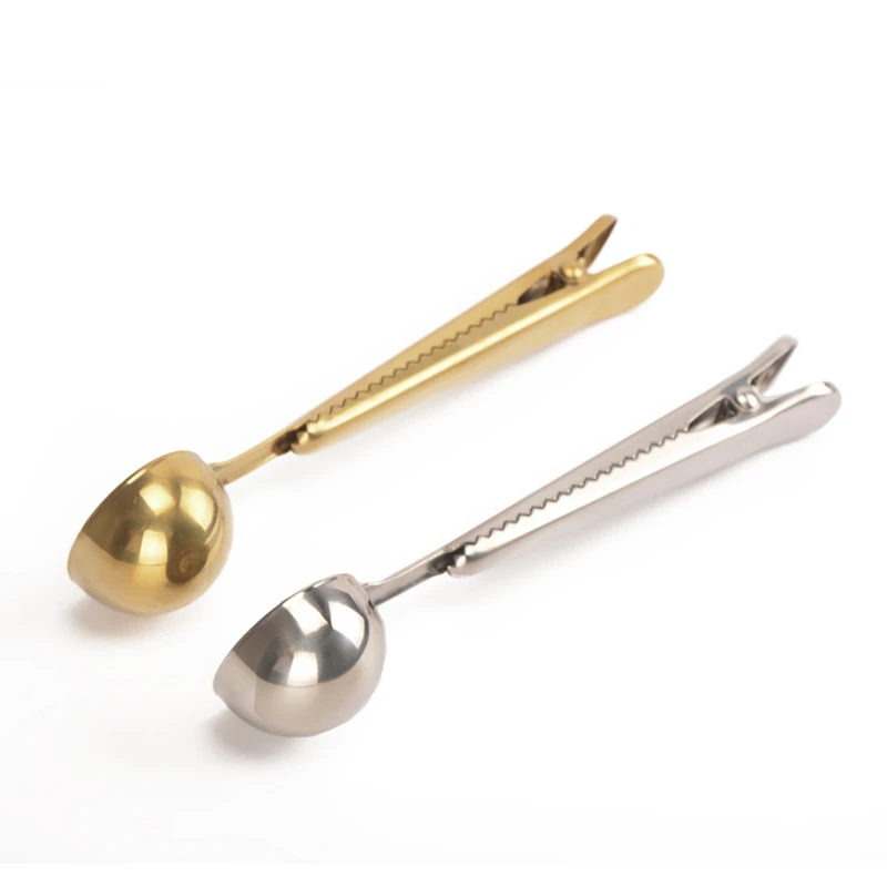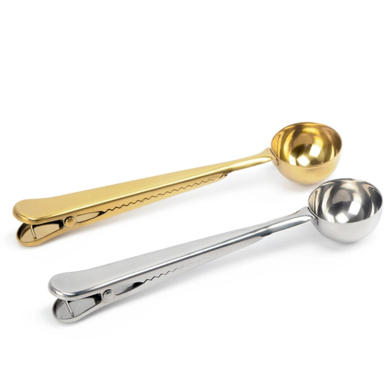 Type:Stainless steel measuring spoon with closure clip Coffee scoop