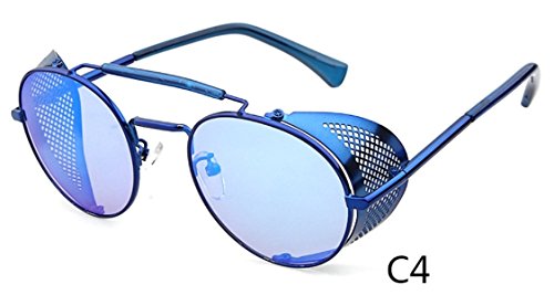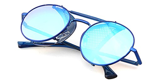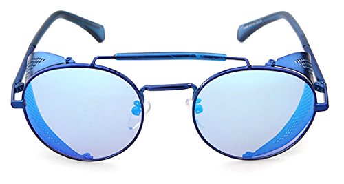 Flowertree Unisex STY056 Metal Frame Fold-in Side Shield Oval 52mm Sunglasses (blue blue)