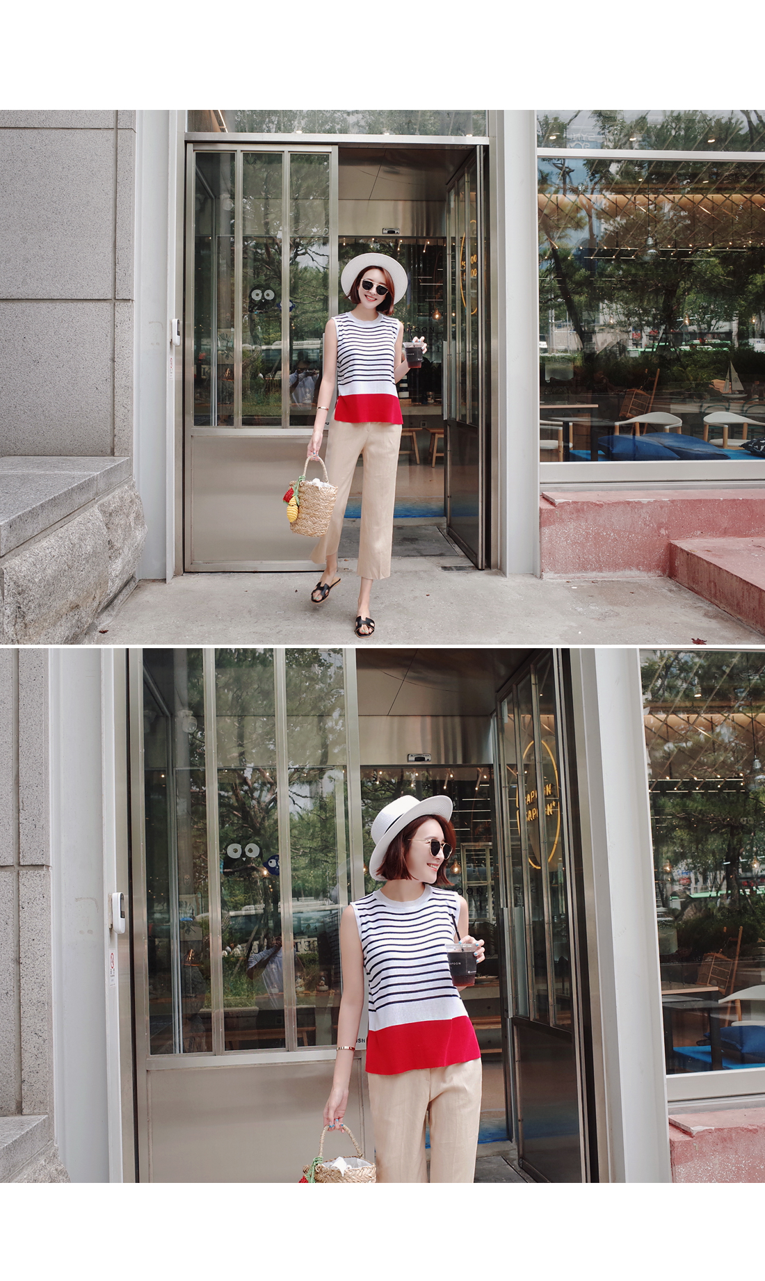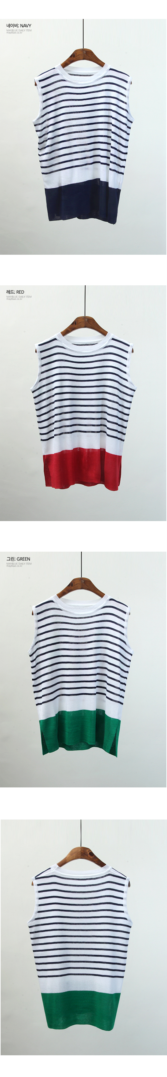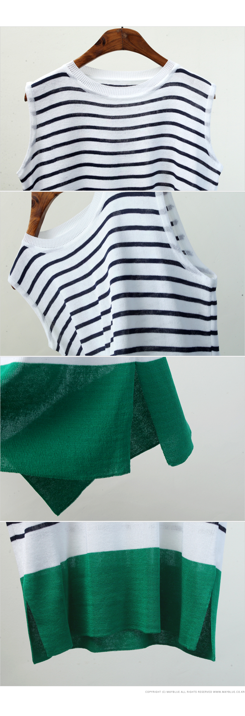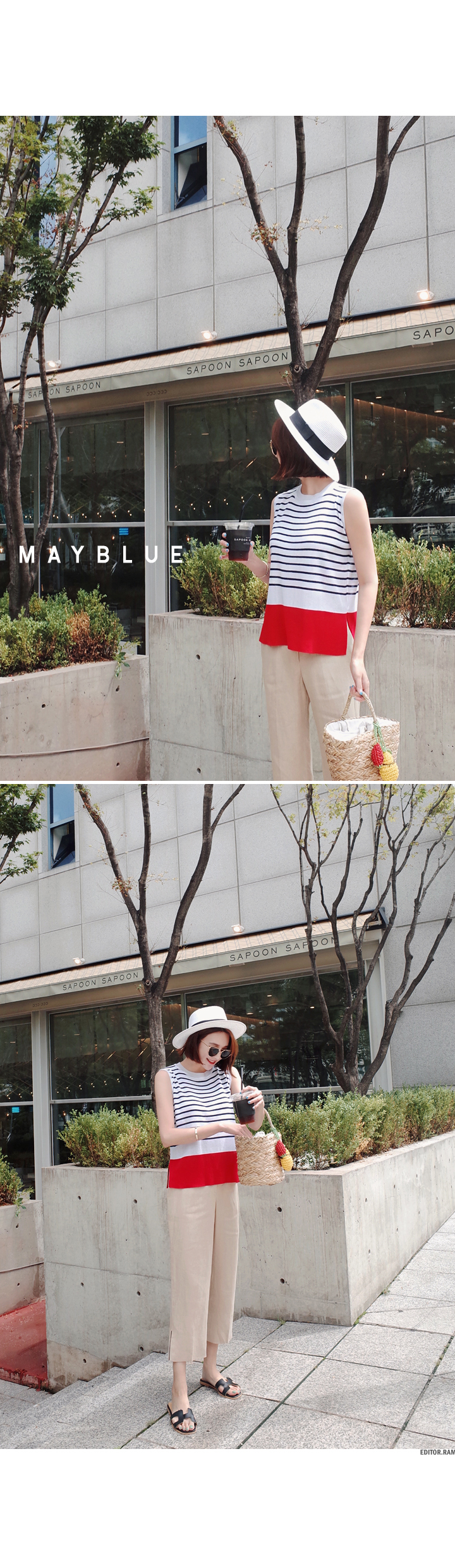 ボーダー柄配色ヘムノースリーブニット | 優しい着心地の、感性カジュアル Mayblue