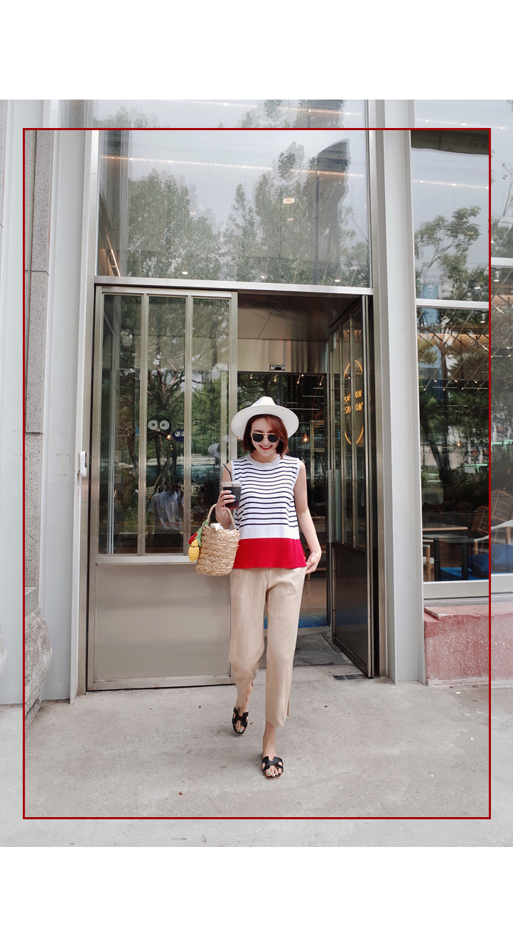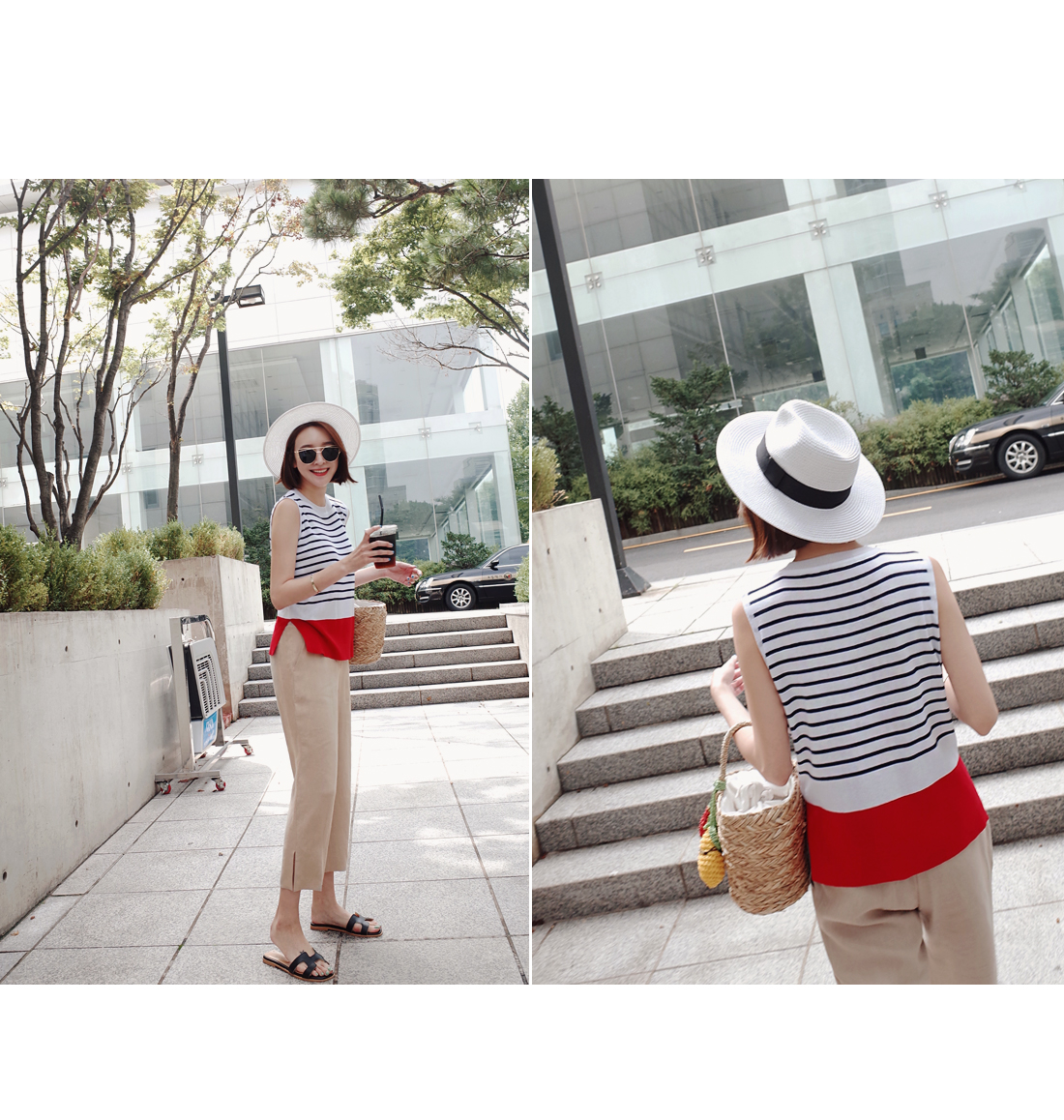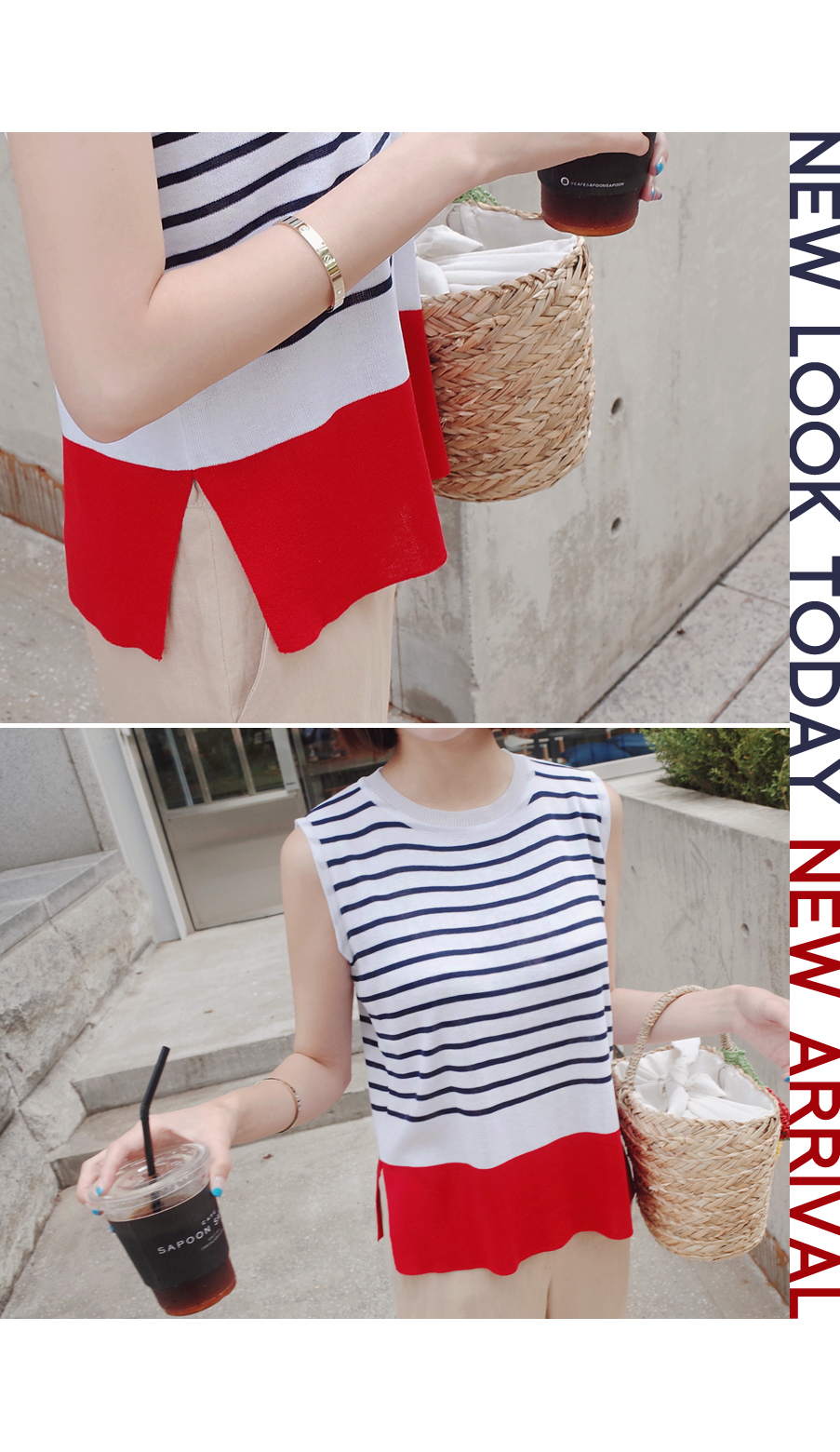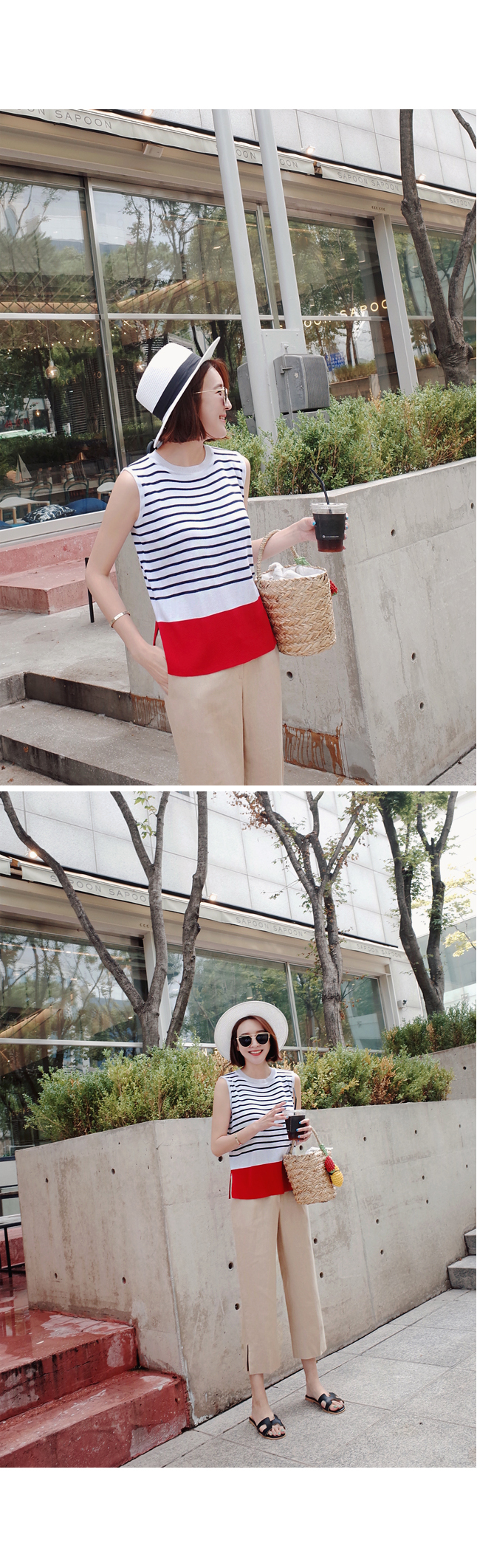 ボーダー柄配色ヘムノースリーブニット | 優しい着心地の、感性カジュアル Mayblue