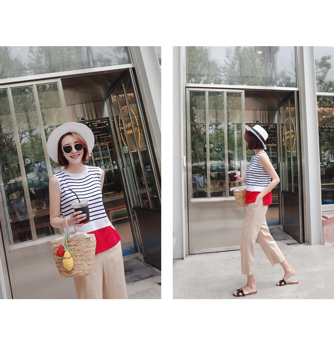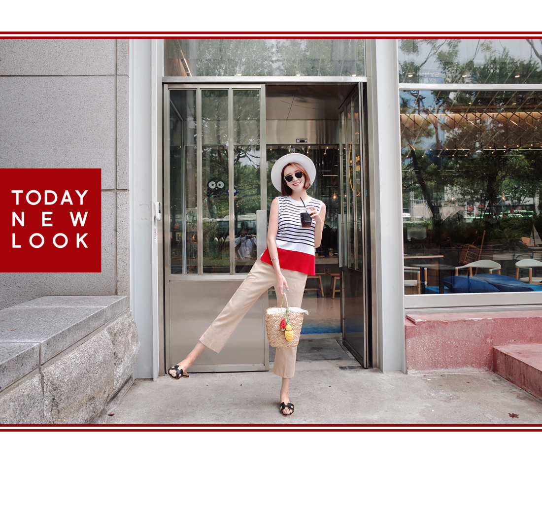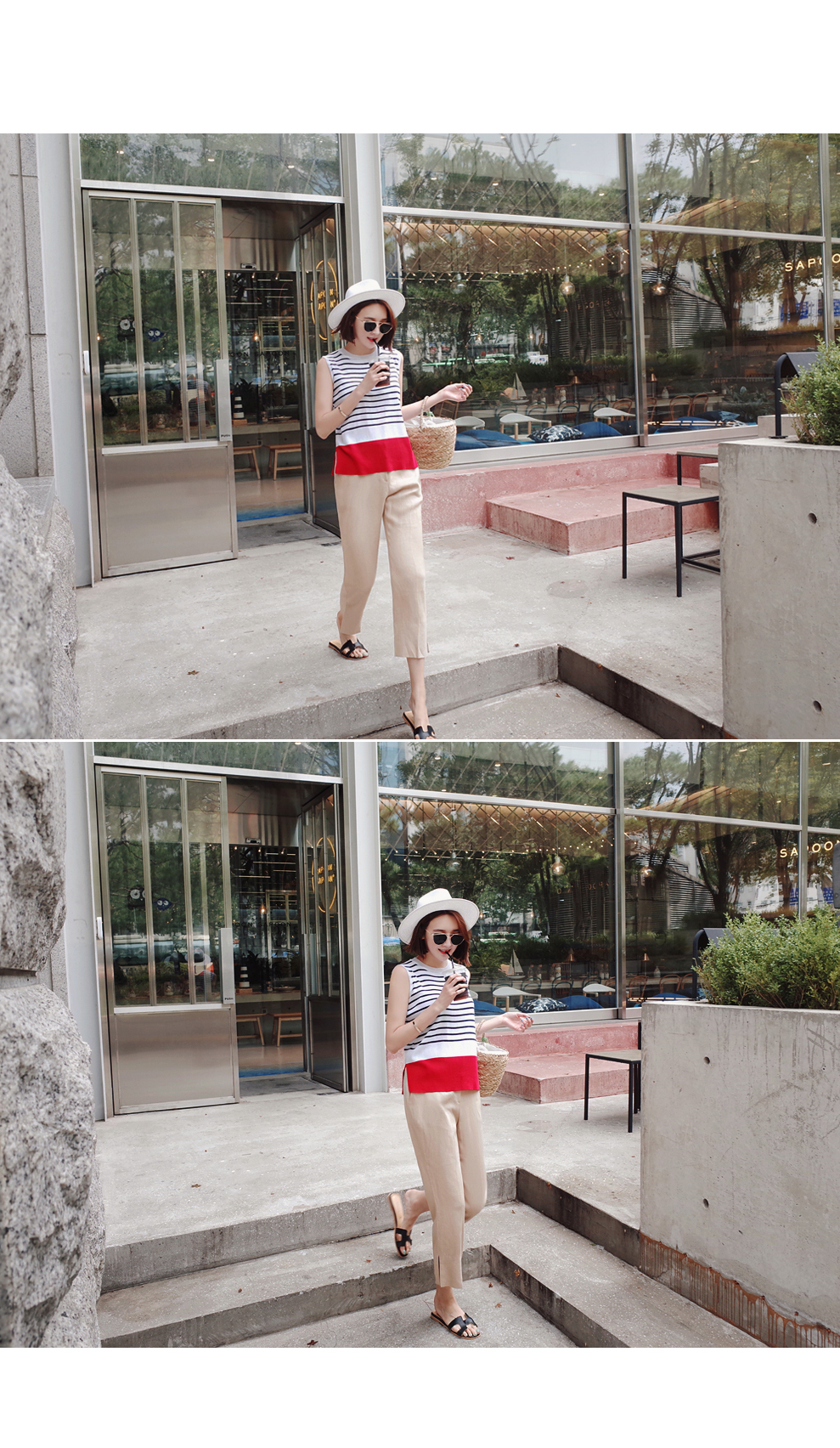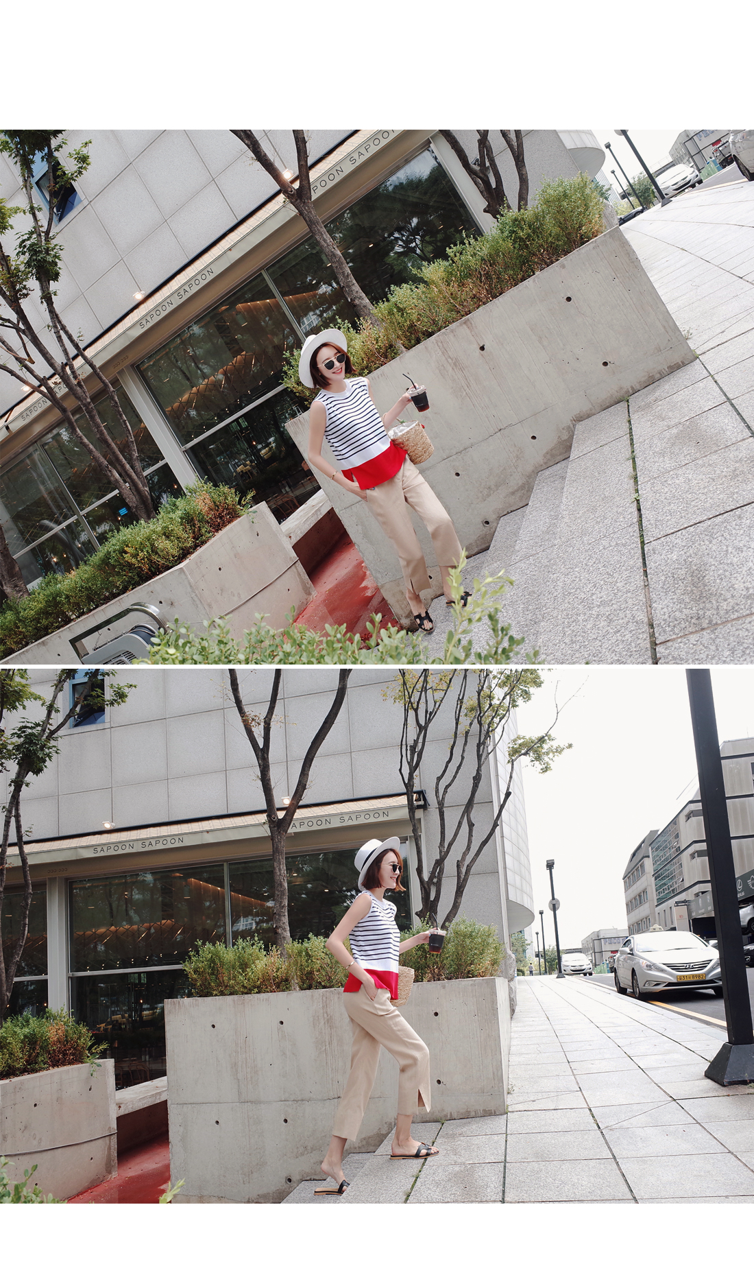 ボーダー柄配色ヘムノースリーブニット | 優しい着心地の、感性カジュアル Mayblue