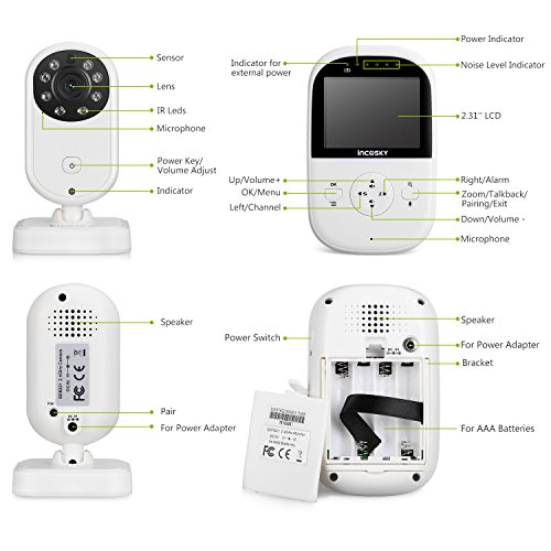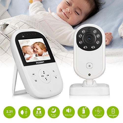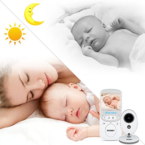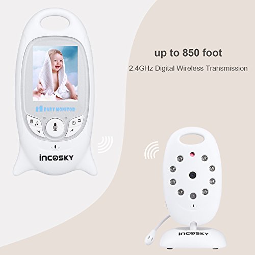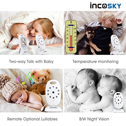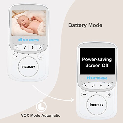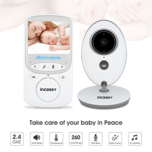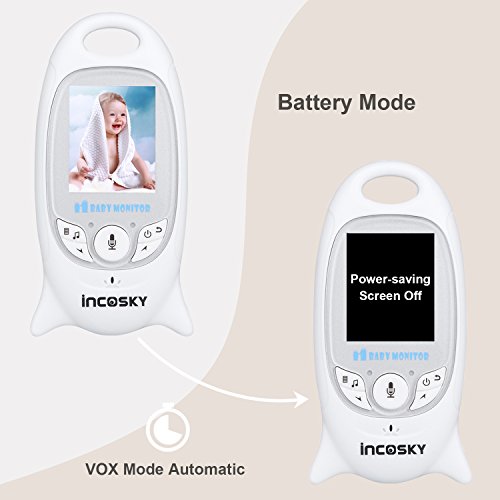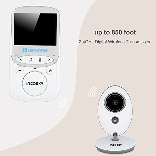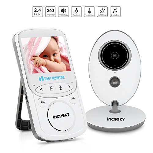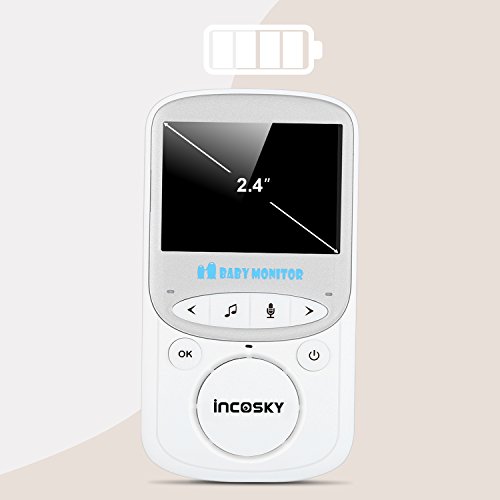 incoSKY Video Baby Monitor Wireless 2.4 GHz Digital IR Camera Night Vision and Temperature Sensor Rooom Monitor 2 Way Talk TU3 2.4" LCD Display VOX Mode White
