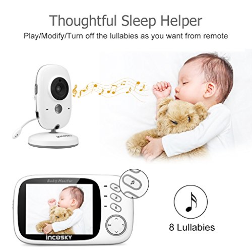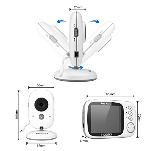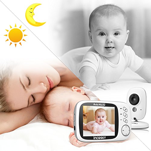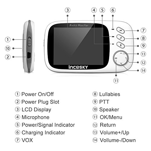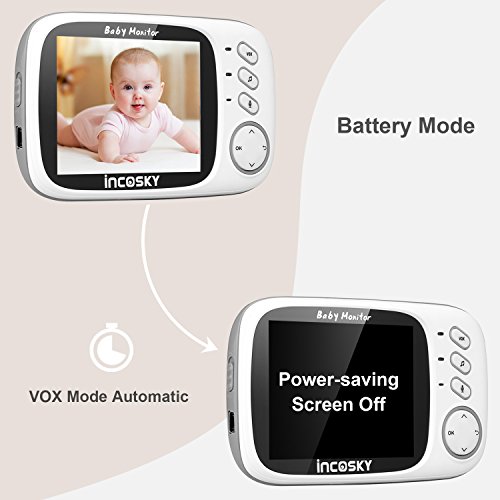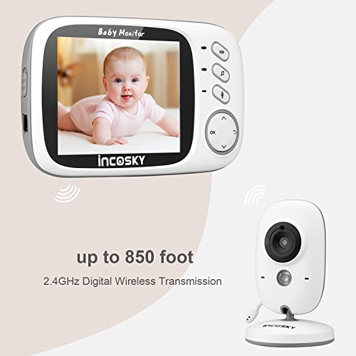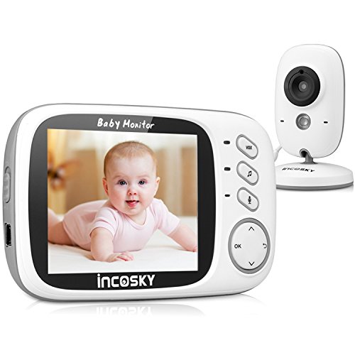 incoSKY Video Baby Monitor Wireless Digital IR Camera Night Vision and Temperature Sensor 2 Way Talk VOX Mode TU1 3.2" LCD Display White