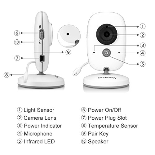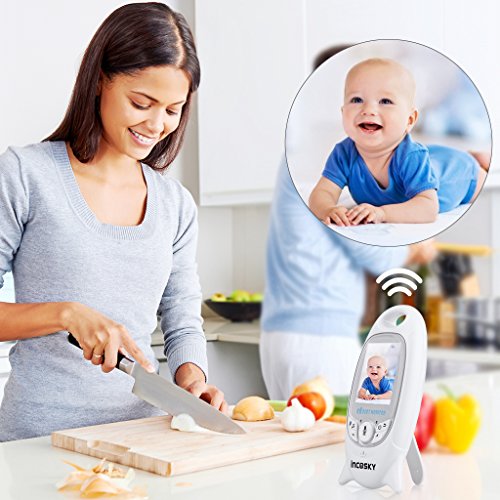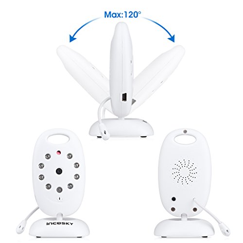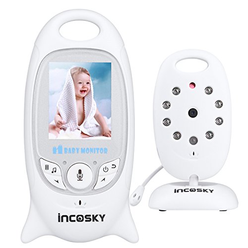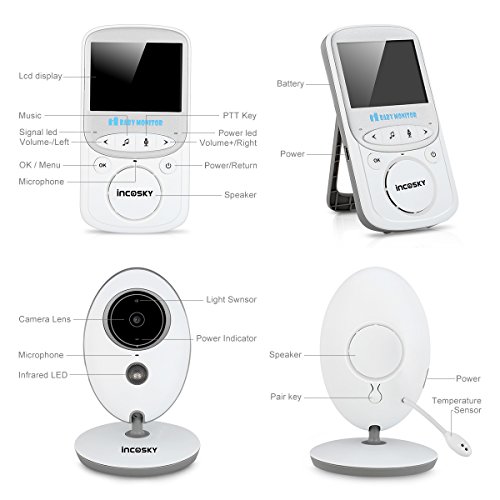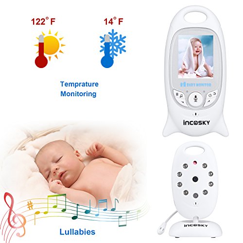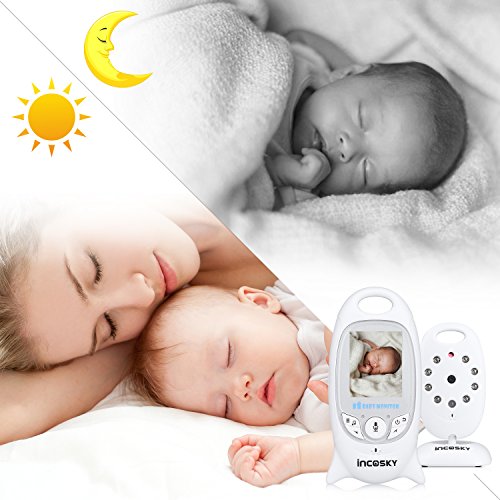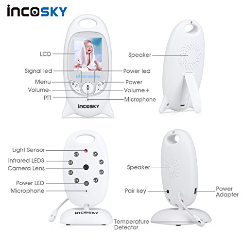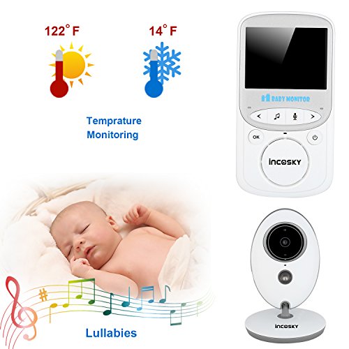 incoSKY Video Baby Monitor Wireless Digital IR Camera Night Vision and Temperature Sensor 2 Way Talk TU2 2.4" LCD Display White