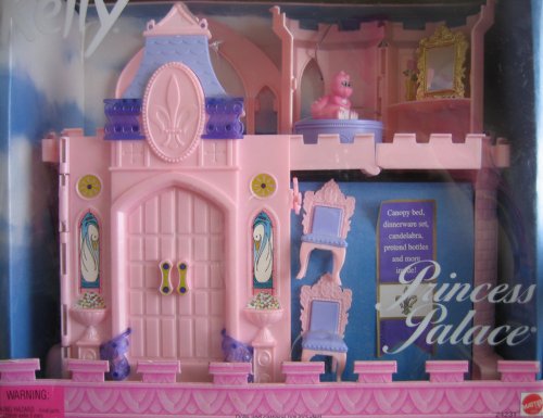 -. Feature : Kelly P.R.Incess Palace is a 1999 Mattel production. For Ages 3+ Years. CAUTION: Small Parts. / Includes: A pink w/purple trim Castle approx. 13.5" wide x 12.5" tall (sizes from outside sealed box); comes w/Pinky the Magic Dragon, a Vanity w/Bath, a Canopy Bed, Dinnerware Set (Tray, 2 Saucers, 2 Tea Cups, 2 Forks, 2 Knives & 2 Spoons), 2 Dining Chairs, a Gold Tone Framed "Mirror", Candelabra (Candle Holder w/3 Candles), 3 Pretend Perfume Bottles, a Clock, & Label Sheet. / Picture on the wall becomes a Table & there's a secret revolving door! / All included items are pretend & intended for Kelly & 4.5" fashion dolls; dolls & carriage NOT included. Playset can be used with other size dolls, as preferred. / Kelly P.R.Incess Palace is great for any collection or for fun play. PLEASE Check in CONDITION NOTE/Comments for the Box Condition.