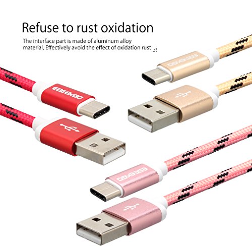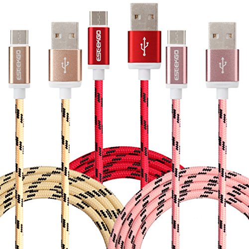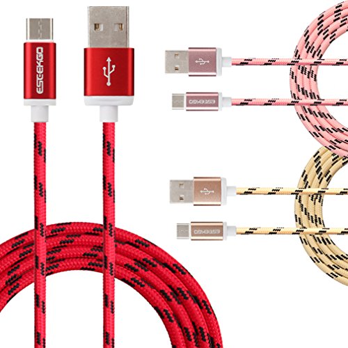 Type C Cable ESEEKGO 3Pack 3Ft for LG G5 Charging Power Line Nylon Charger Cables for Sansung S8,Huawei P9/P10,LG V20/G6 (1M/3Ft Gold+Pink+Red)