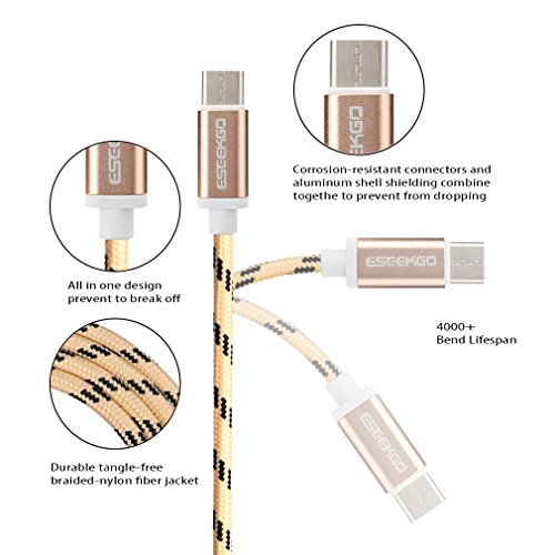 Package: 3 Pack 3Ft Nylon Type C Charging Cable (1*Gold+1*Pink+1*Red ). ESEEKGO provide One-Year warranty and friendly easy-to-reach customer service for you.PAY ATTENTION: To ensure you can enjoy the best product and great after-sale service from ESEEKGO,Please avoid buying ESEEKGO products from Other Sellers, or We Can Not Promise the Product Quality !