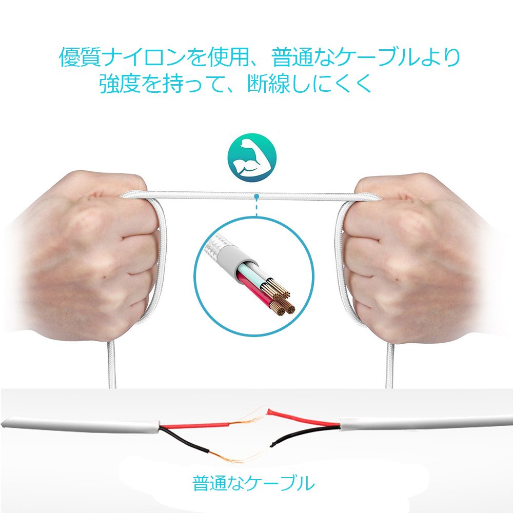 Durable and tangled design, high durability Since it is covered with nylon, it has more strength than ordinary cable.