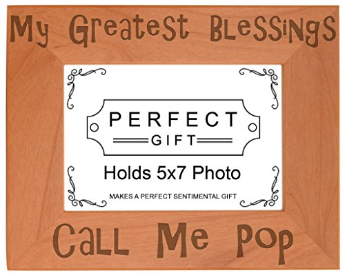 Father's Day Gift Blessings Call Me Pop Natural Wood Engraved 5x7 Landscape Picture Frame Wood