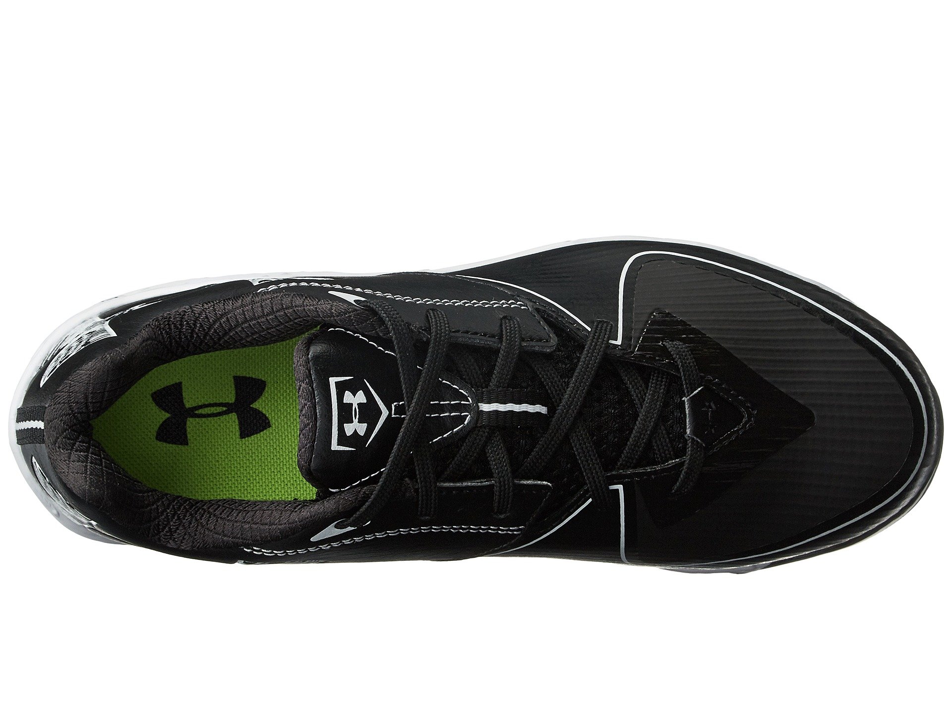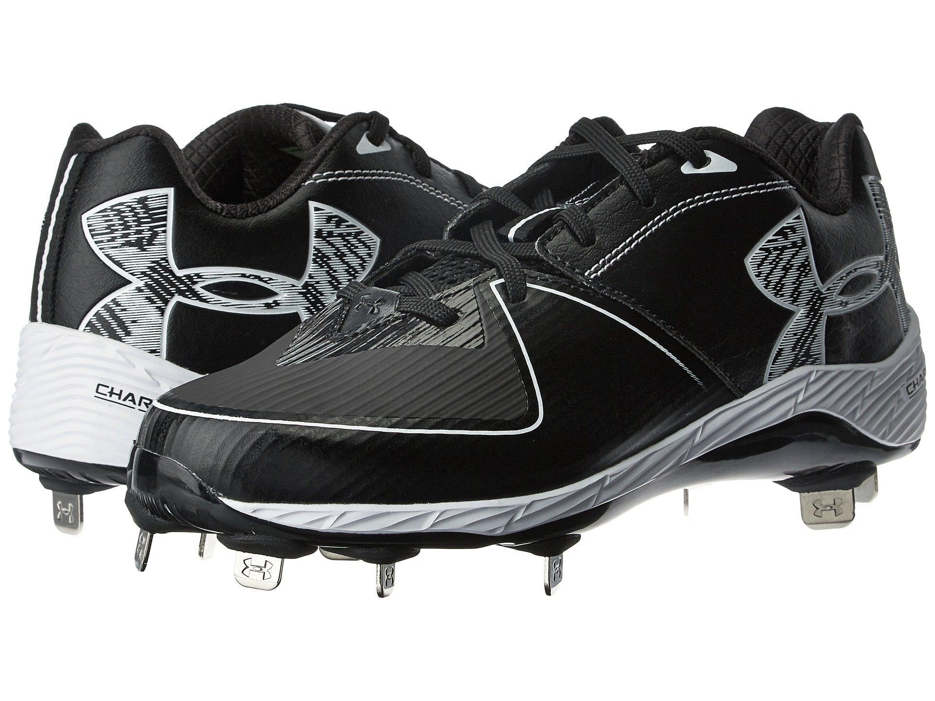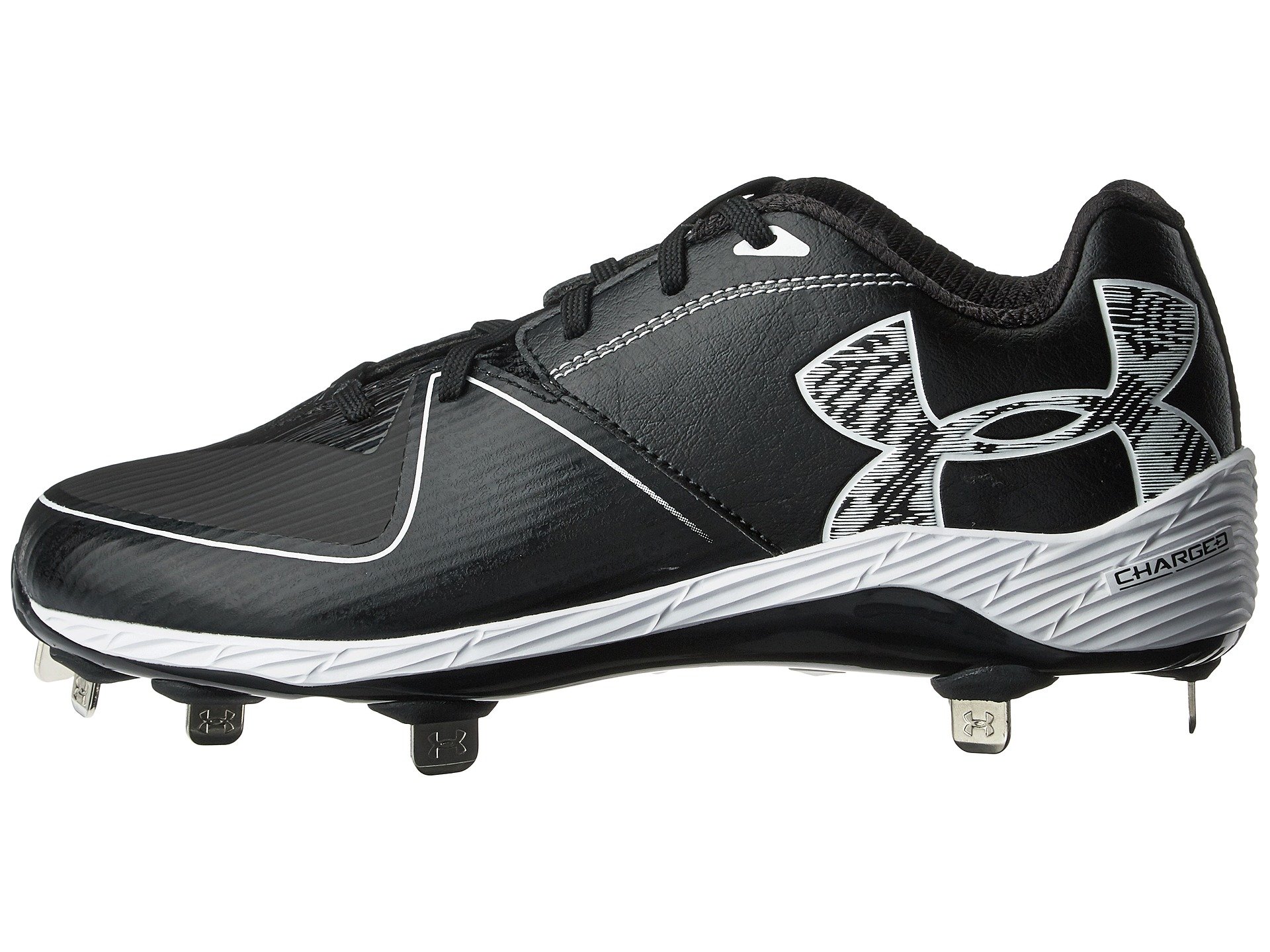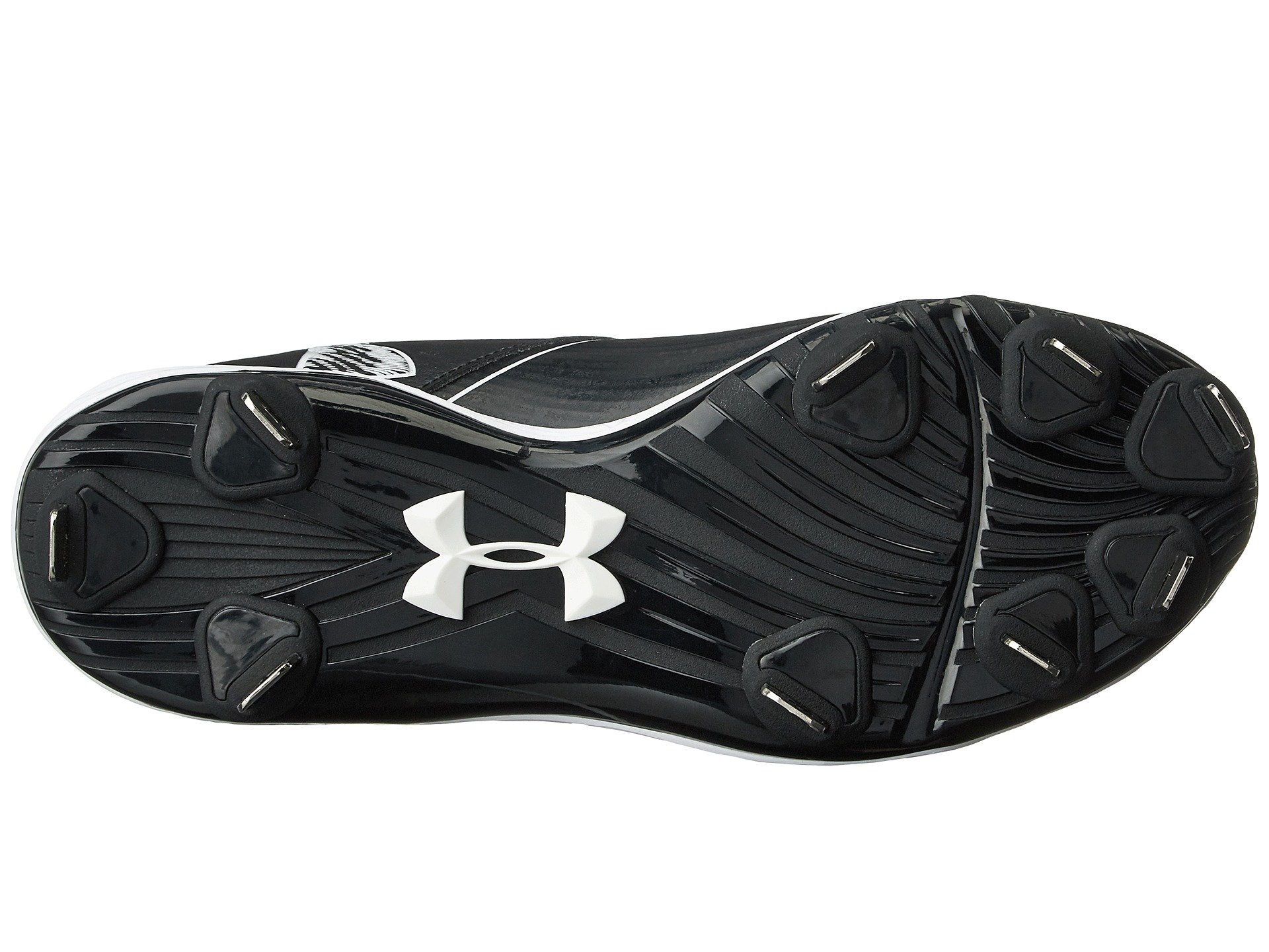 | Product Information SKU: #8761262Bring the heat to each and every play in the Under Armour? UA Glyde ST softball cleat!Lightweight, durable synthetic upper. Lace-up closure. Abrasion-resistant toe overlay adds protection and stands up against drag. Padded tongue and collar. Comfortable fabric lining supplies a great in-shoe feel. Molded 4D Foam? insole conforms to the foot. Full-length ArmourBond? midsole cushions and evenly distributes cleat pressure for lasting underfoot comfort. Rotational Traction design enhances rotational capability for maximum acceleration and power. Rigid ArmourGuide? TPU outsole prevents the foot from twisting and rolling from side to side. Forefoot flex grooves offer increased flexibility. Nine metal blades deliver optimal traction. Imported. Product measurements were taken using size 7.5, width B - Medium. Please note that measurements may vary by size.Weight of footwear is based on a single item, not a pair.Measurements: Weight: 11.6 oz |
