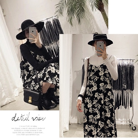 ストンと落ち感があるシルエットと細い肩ストラップがこなれ感も演出できる大人キレイなワンピースです。