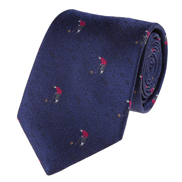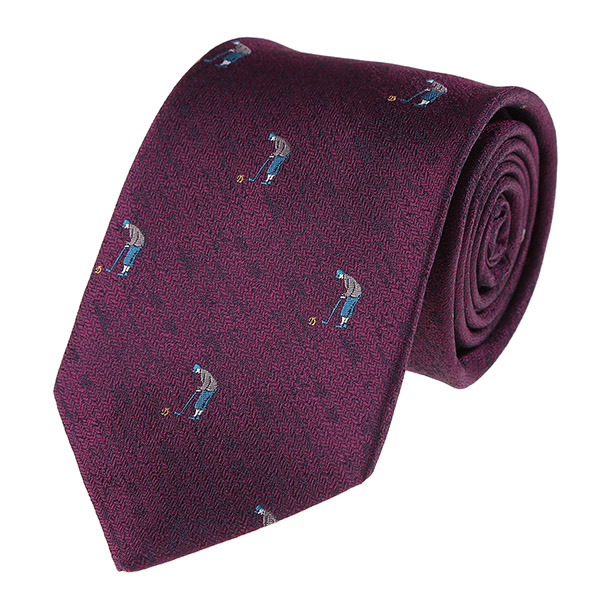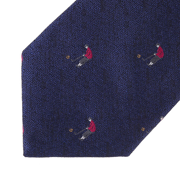 브러쉬드한 조직바탕으로 골프치는 사람모티브와 D로고가 유머러스하게 조합된 올오버 타이