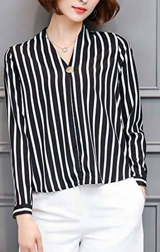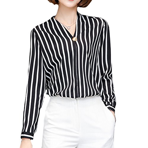 -. Feature : 【 Big laugh 】 レディース ブラウス 長袖 ストライプ トップス シャツ Vネック ボタン きれいめ 通勤 エレガント / ストライプがスタイリッシュでかっこよく着こなせる長袖シャツです♪ スーツの下のインナーとしてはもちろん、これ1枚でもお洒落に着こなせますよ◎ ストライプは体型を細くみせる効果があるので、着やせ効果もばっちりで、着るだけで体型カバーになりますよ♪ / カラー : ブラック / 【M】 着丈 66.0cm、 胸囲 96.0cm、肩幅 37.0cm、袖丈 52.0cm 【L】 着丈 67.0cm、 胸囲 100.0cm、肩幅 38.0cm、袖丈 53.0cm 【XL】 着丈 68.0cm、 胸囲 104.0cm、肩幅 39.0cm、袖丈 54.0cm 【XXL】 着丈 69.0cm、 胸囲 108.0cm、肩幅 40.0cm 、袖丈 55.0cm / その他、カラーございますのでご覧ください。サイズ、カラーのタブをクリックしてくださいね♪
