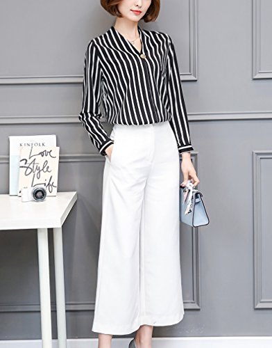 -. Title : 【 Big laugh 】 レディース ブラウス 長袖 ストライプ トップス シャツ Vネック ボタン きれいめ 通勤 エレガント