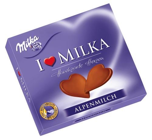 -. Feature : Die hauchdünnen, herzförmigen Täfelchen aus zart schmelzender Milka Alpenmilch Schokolade / Perfekt für zwischendurch oder als kleine Aufmerksamkeit. Sagen Sie "Alles Liebe" mit Milka in Herzform! / Die Milka Alpenmilch Schokolade bietet einen leckeren und zartschmelzenden Schokoladengenuss / Die I love Milka Hauchzarten Herzen gibt es auch in Zartherb