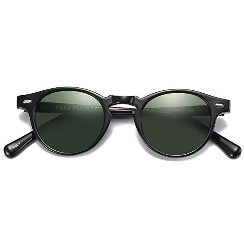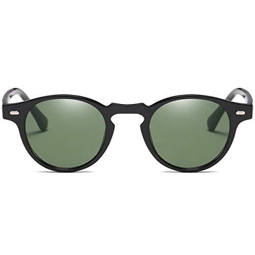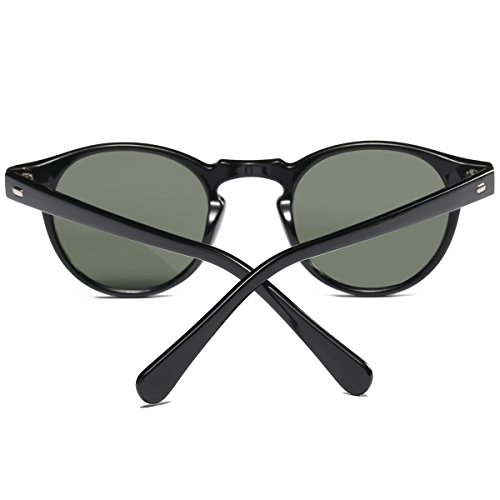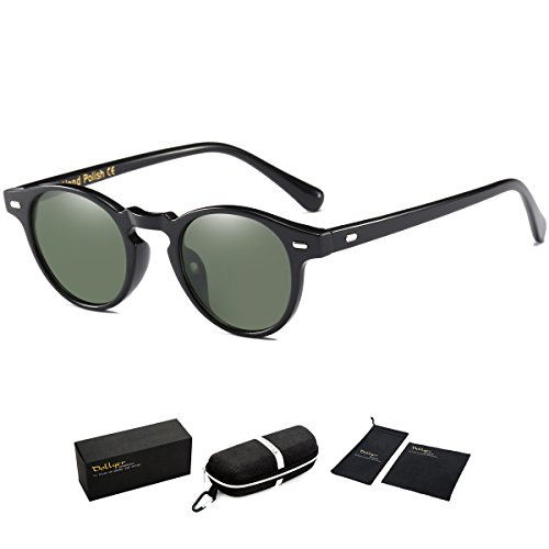 Dollger Classic Horn Rimmed Keyhole Nose Small Round Sunglasses with Metal Rivets