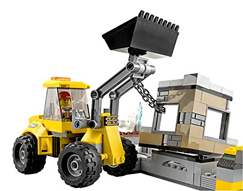 -. Feature : Features a crane with movable jib and wrecking ball, front-end loader with moving bucket, dump truck with tipping bed / Accessories include a jackhammer, pickaxe, saw, shovel, 2 dynamite sticks, sign, wheelbarrow, garbage can, toilet, rat and ear protectors / Crane measures over 11" (29cm) high, 8" (21cm) long and 4" (11cm) wide / Front-end loader measures over 3" (9cm) high, 7" (19cm) long and 2" (7cm) wide / Dump truck measures over 2" (7cm) high, 5" (13cm) long and 2" (6cm) wide