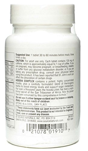 -. Binding : Health and Beauty -. Brand : Source Naturals -. EAN : 0021078019107 -. Feature : 30 Tablets / Serving Size: -. IsAutographed : 0 -. IsMemorabilia : 0 -. Label : Source Naturals -. LegalDisclaimer : This information is intended for your general knowledge only and is not substitute for professional medical advice or treatment for specific medical conditions. This information is not intended to diagnose, treat, cure or prevent any disease. Always seek the advice of your qualified physician or other health care provider with any questions you may have regarding a medical condition. Keep out of reach of children. -. Manufacturer : Source Naturals -. MPN : 0021078019107 -. NumberOfItems : 1 -. PackageQuantity : 1 -. PartNumber : 0021078019107 -. ProductGroup : Health and Beauty -. ProductTypeName : HEALTH_PERSONAL_CARE -. Publisher : Source Naturals -. Studio : Source Naturals -. Title : Hoodia Complex 30 Tablets -. UPC : 021078019107