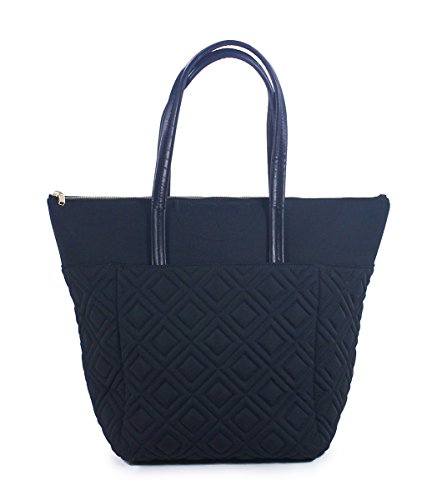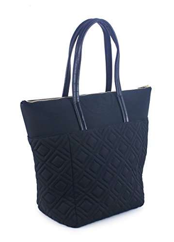 -. Brand : Tory Burch -. ClothingSize : One Size -. Color : Black -. Department : womens -. EAN : 0887712946297 -. Feature : Quilted nylon. Flat leather shoulder straps. / Top zip closure. Exterior snap closure pockets on front and back. Interior zip pockets. / Two slip pockets. / Color: Black / H: 14.00 in x W: 7.00 in x L: 17.00 in 7.5 -. Label : Tory Burch -. Manufacturer : Tory Burch -. Model : 32149507 -. PackageQuantity : 1 -. ProductGroup : Shoes -. ProductTypeName : HANDBAG -. Publisher : Tory Burch -. Size : One Size -. Studio : Tory Burch -. Title : Tory Burch Fleming Nylon Tote Bag Black -. UPC : 887712946297 Easy for everyday, the Tory Burch Fleming Nylon tote is a must have item! Quilted nylon. Flat leather shoulder straps. Top zip closure. Exterior snap closure pockets on front and back. Interior zip pockets. Two slip pockets.
