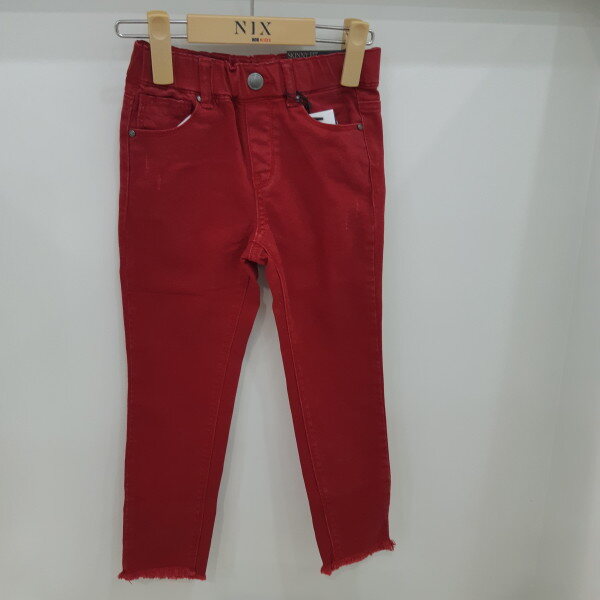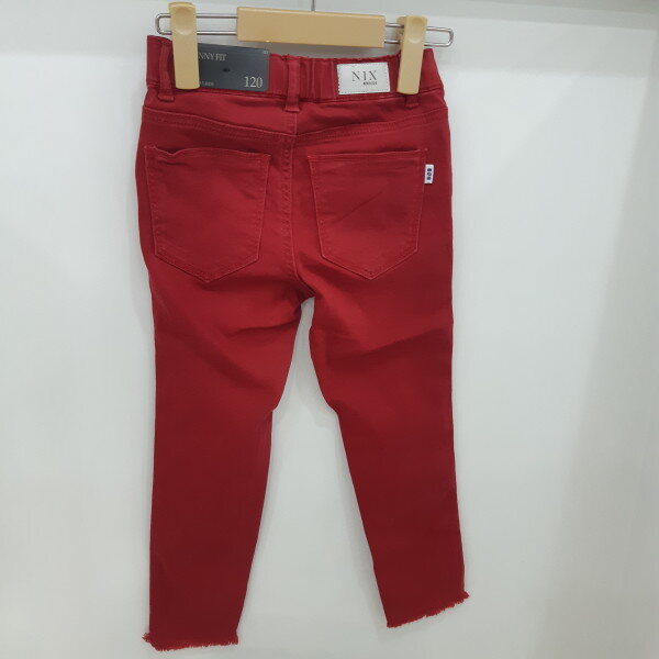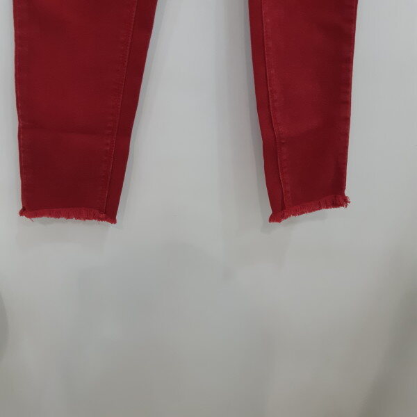 RED컬러 밑단변형 스키니면 팬츠